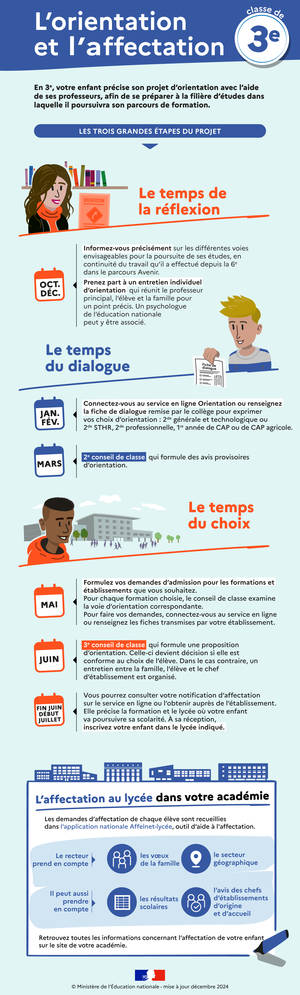 L’élève et sa famille s’informent sur les différentes voies possibles avec l’aide du professeur principal et du psychologue de l’Éducation nationale.