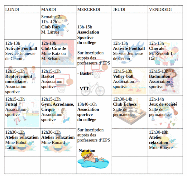 Les fiches d'inscription pour participer aux activités organisées par le Foyer Socio-Educatif sont disponibles à compter de cette semaine.